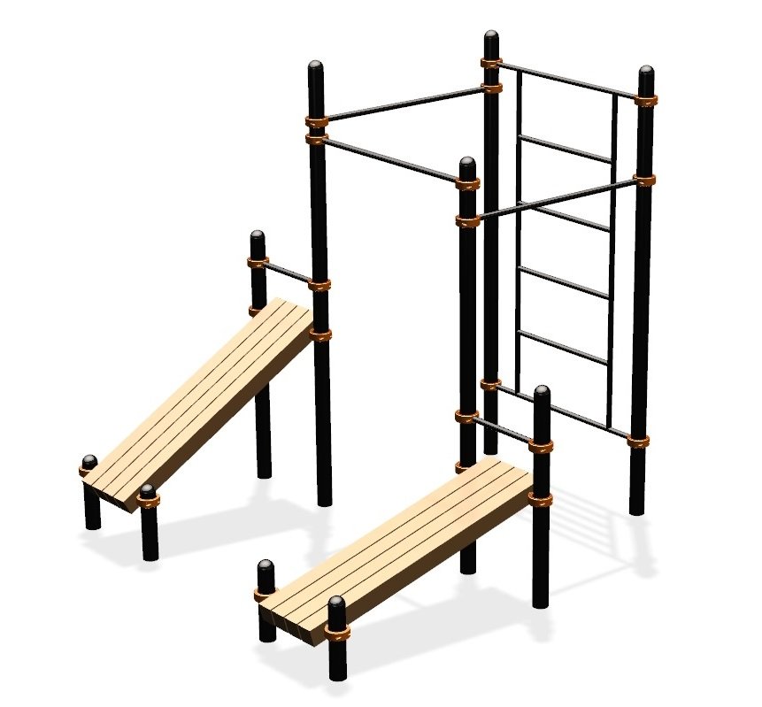 Данный спорткомплекс предназначен для монтажа на открытых площадках, позволяет тренироваться участникам детских спортивных команд. Оборудование можно разместить как на территории школ, так и во дворах, на дачах, в парках, предоставляя всем желающим возможность укрепить мышцы, тренировать силу и выносливость в свободное время без финансовых затрат. Комплекс предусматривает 3 разноуровневых турника с регулировкой высоты перекладины, 2 скамьи для пресса, шведскую стенку. Инвентарь оптимально подходит для установки на территории подростковых, детских спортивных центров. С помощью данного оборудования можно тренировать все группы мышц, готовиться к соревнованиям. Кроме того, регулируемые хомутами перекладины обеспечивают возможность настройки высоты турников в соответствии с ростом спортсменов. Это также позволит родителям заниматься спортом вместе с детьми. На сайте вы сможете подобрать инвентарь в спортивный зал в детском саду.
